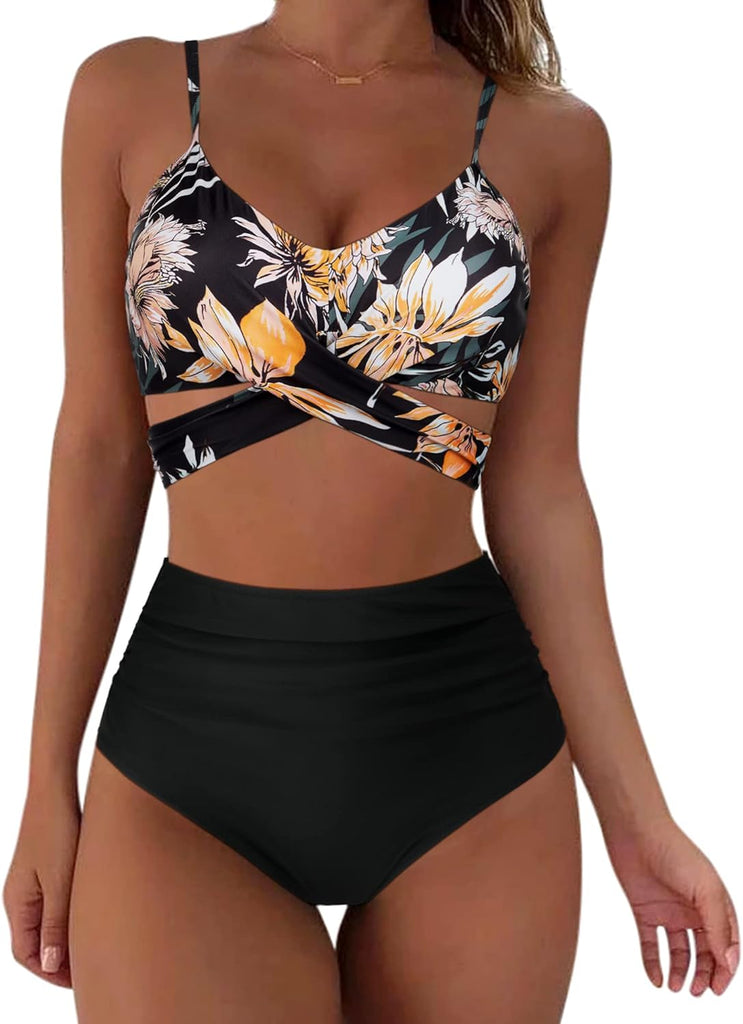 Women Wrap Bikini Set Push Up High Waisted 2 Piece Swimsuits