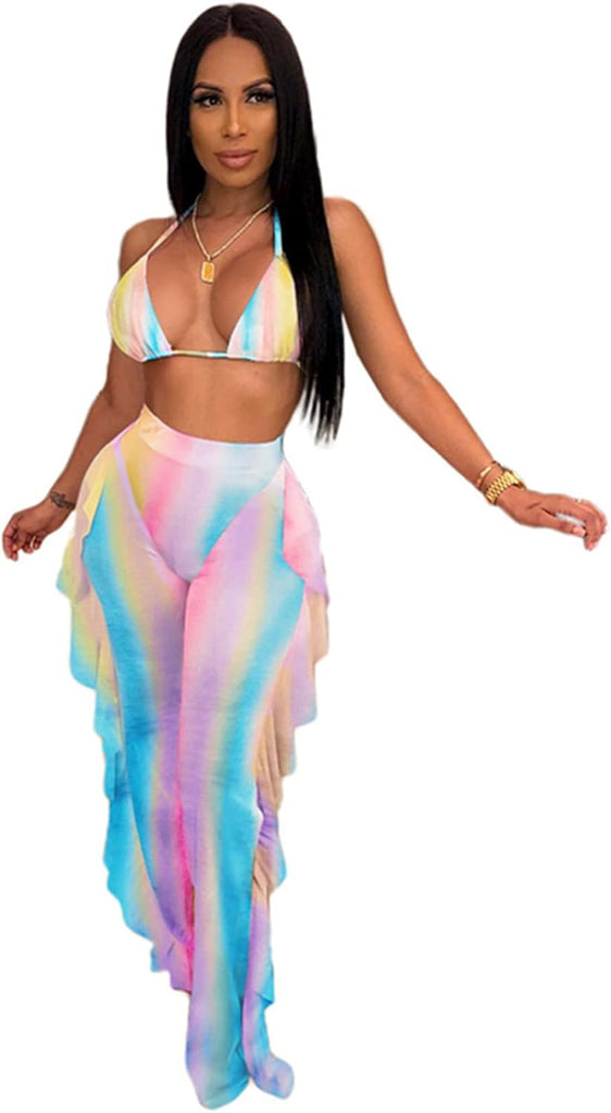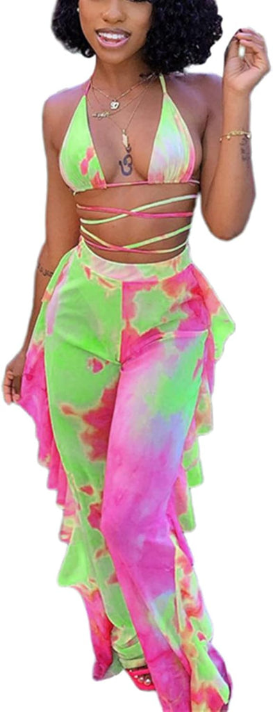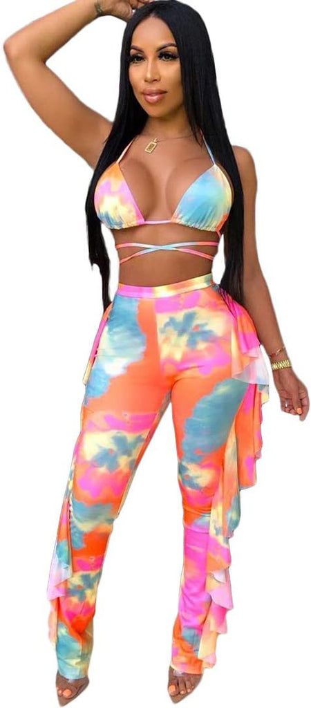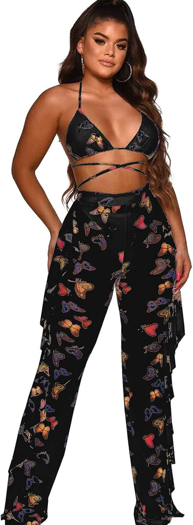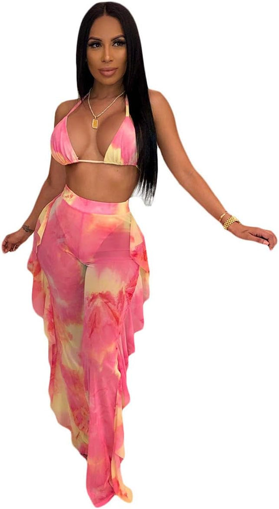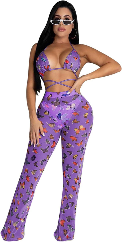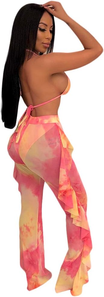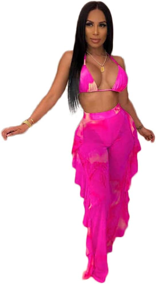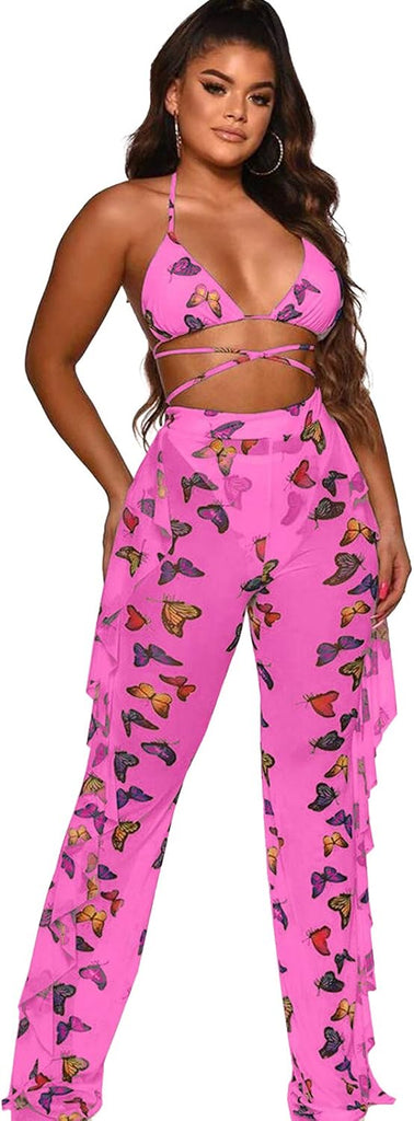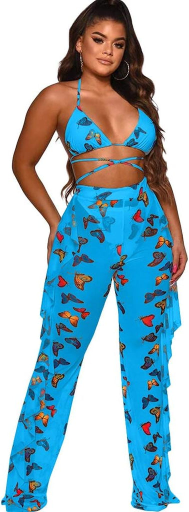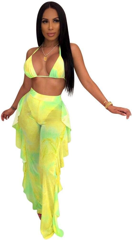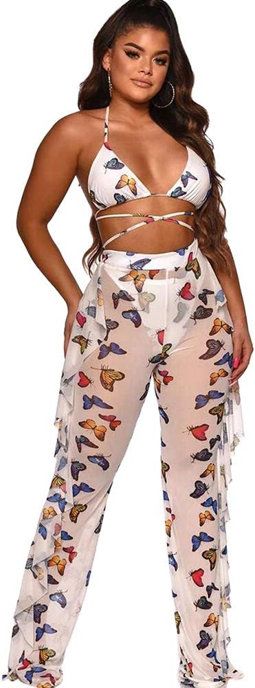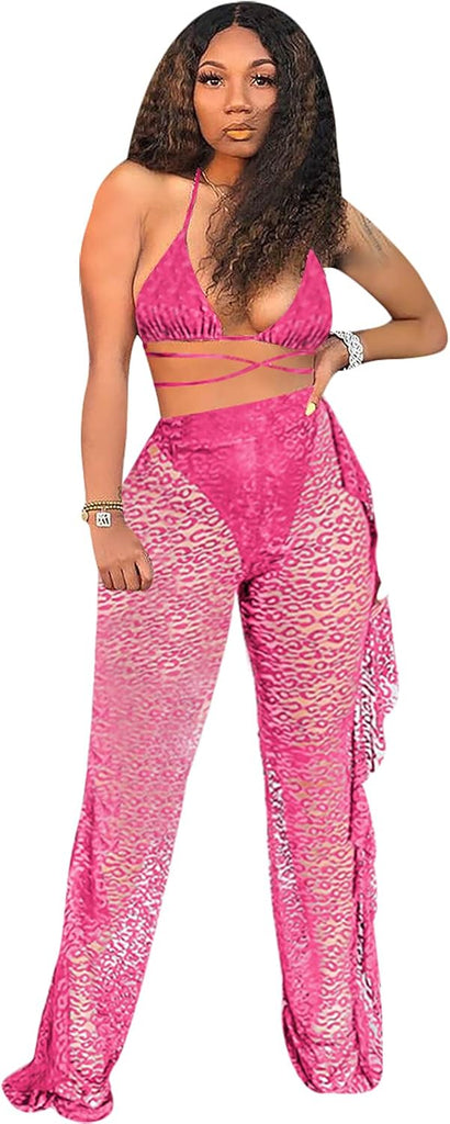 Women's Jumpsuit Beach Swimsuit Mesh Cover Up See Through Two Piece Outfits Clubwear with Briefs