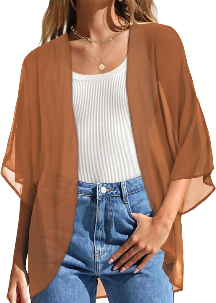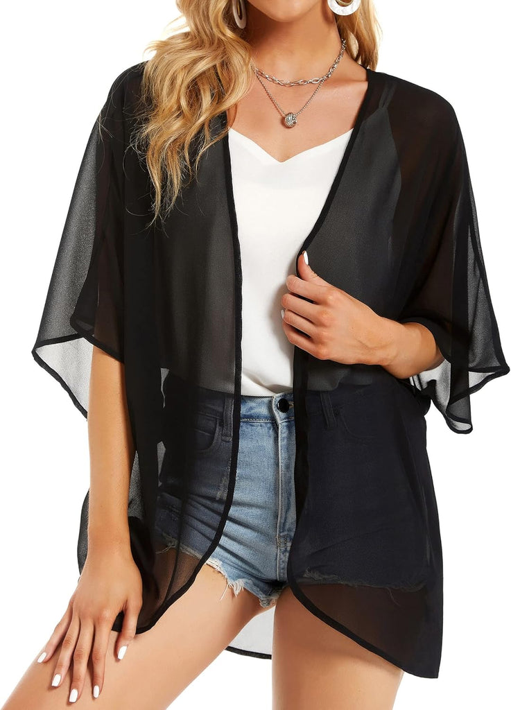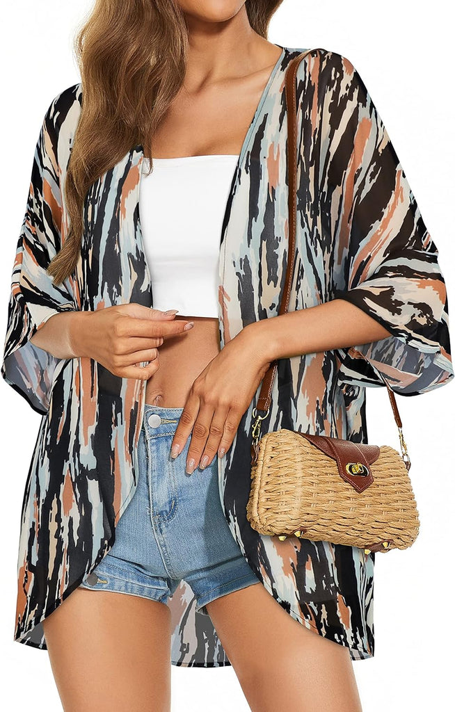 • Womens dressy kimonos shawl wraps can be worn with almost any clothes outfits.Simply pair with swimwear,beachwear,resort wear, lounge wear,cruise wear,daily wear for a trendy layering look.Match with sleeveless vest,tees,jeans and pants during the spring,summer nights and fall.