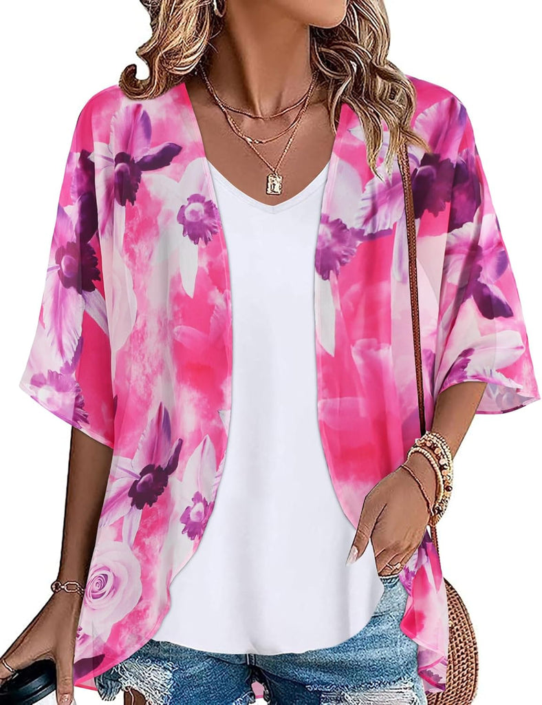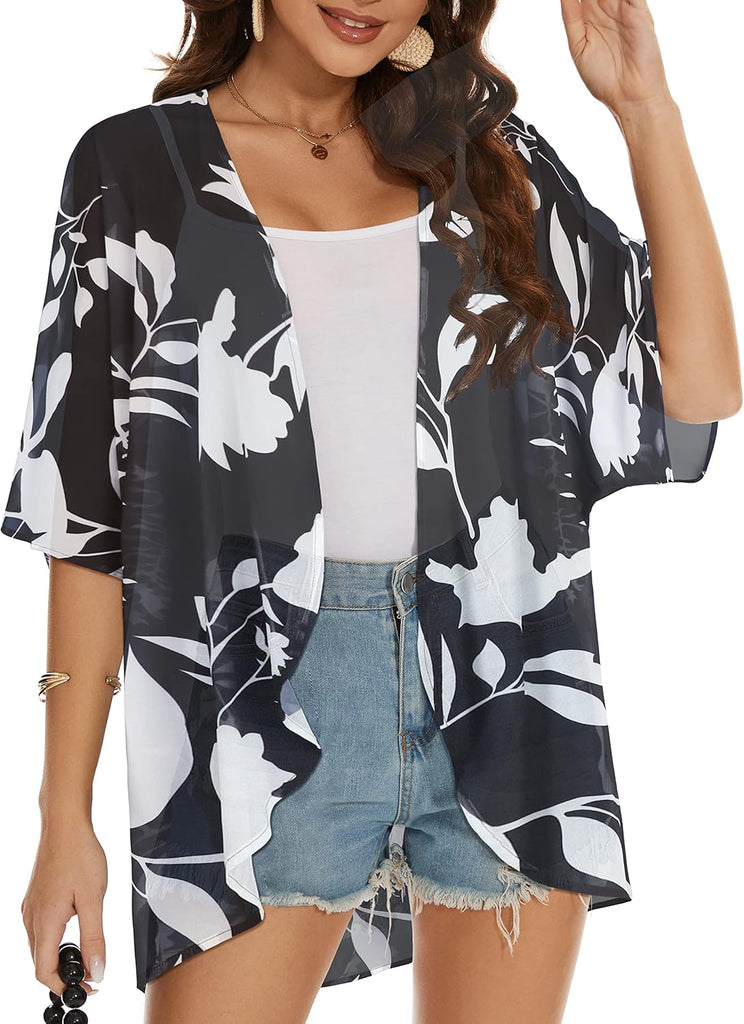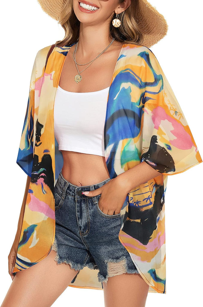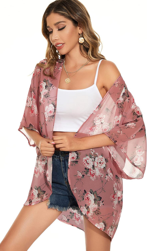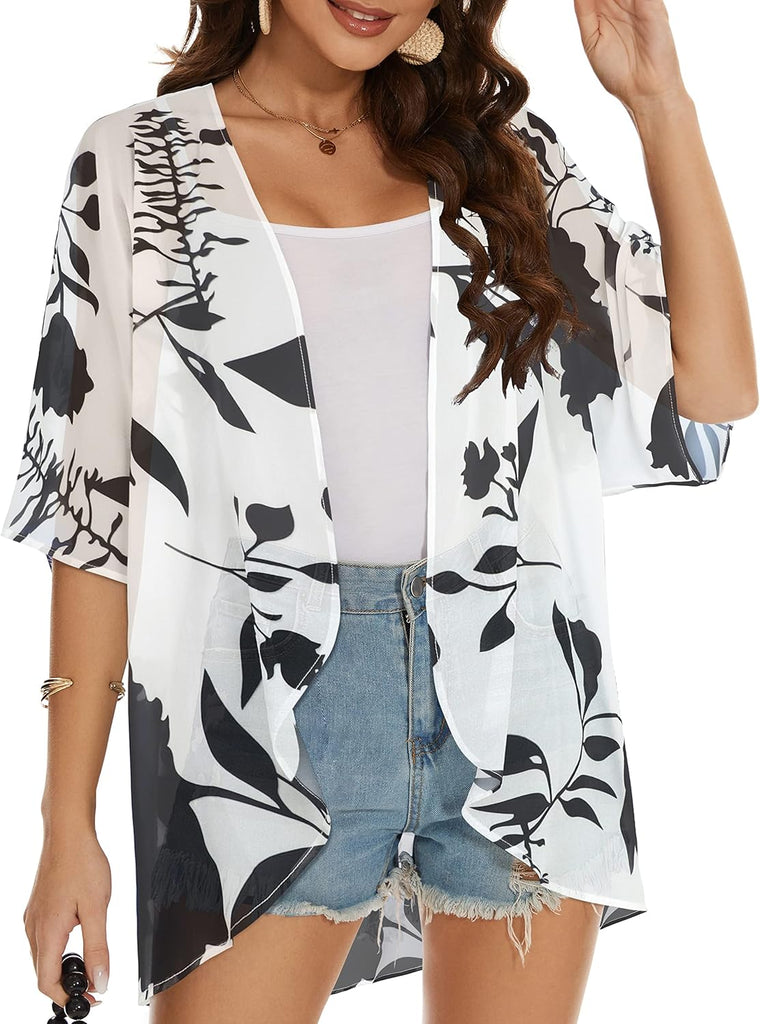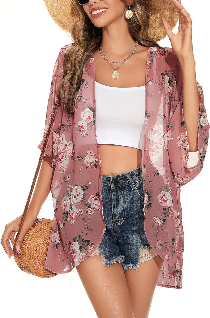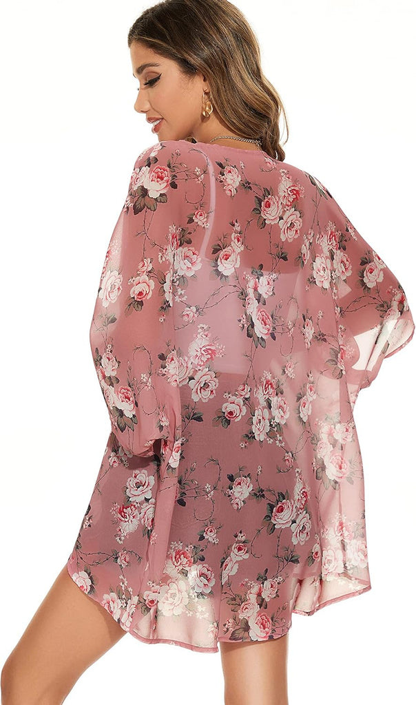 Womens Kimono Beach Cover Up Chiffon Cardigan Floral Tops Loose Capes