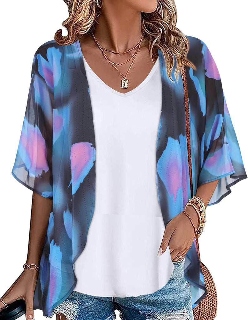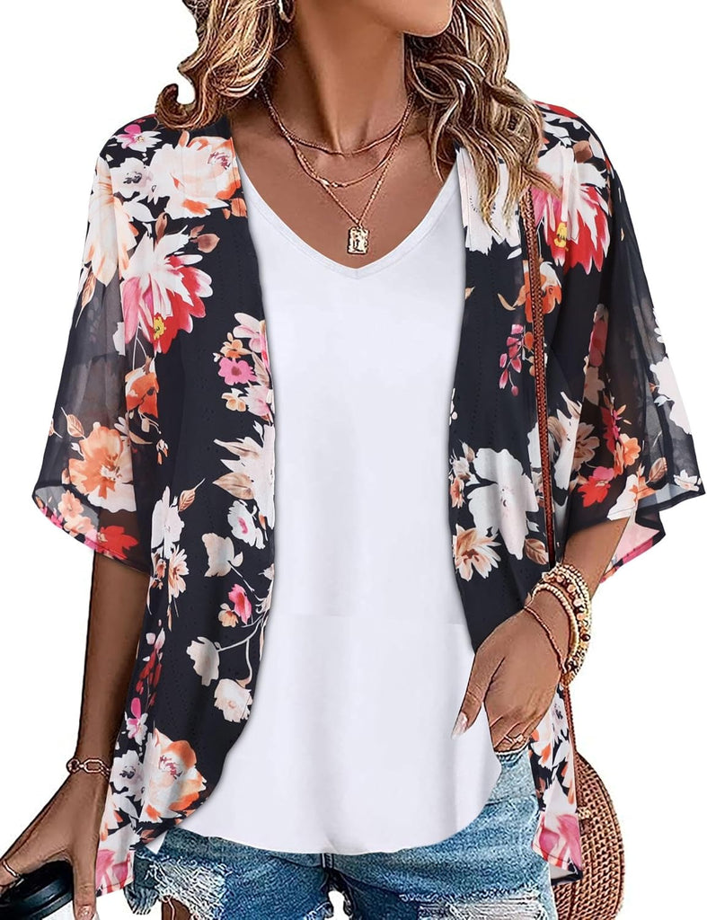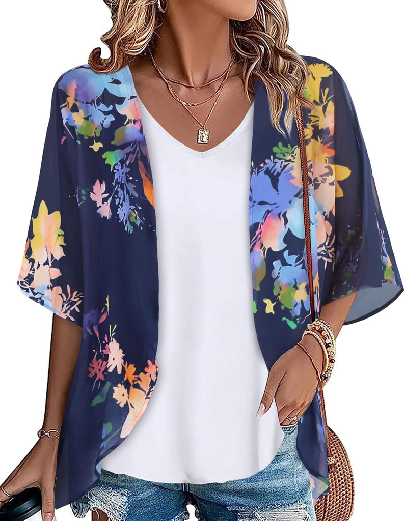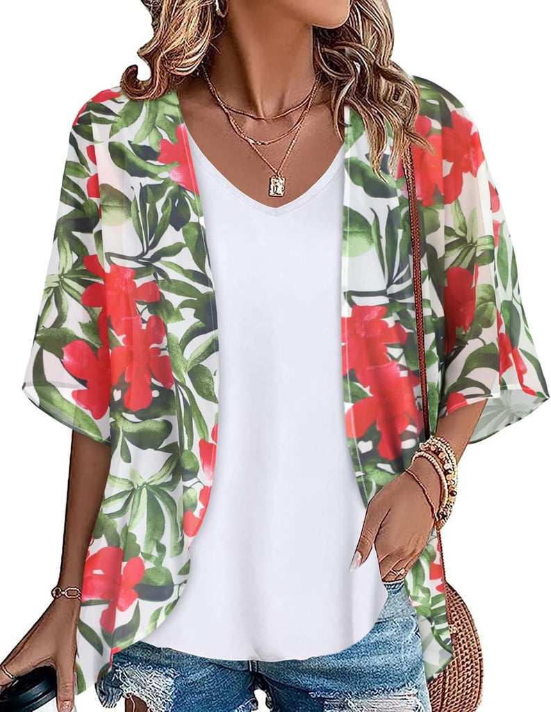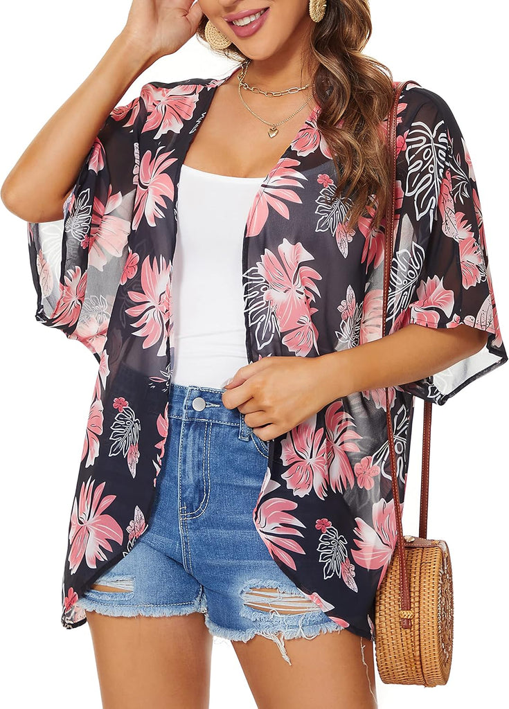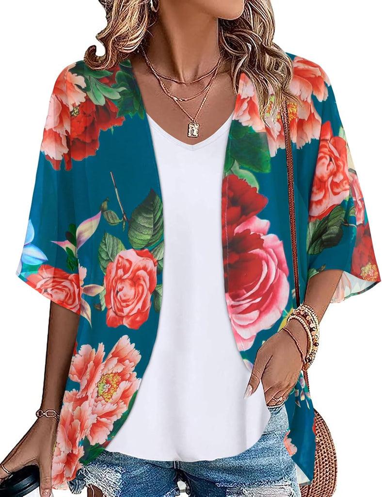 Womens Kimono Beach Cover Up Chiffon Cardigan Floral Tops Loose Capes