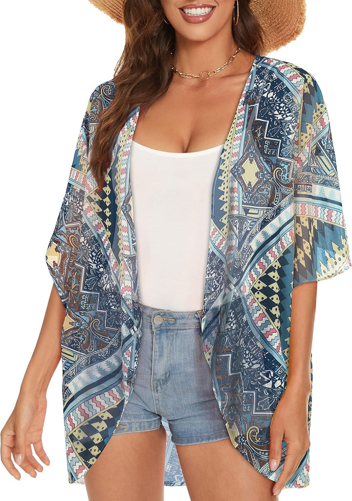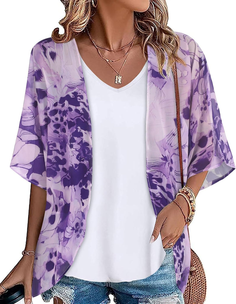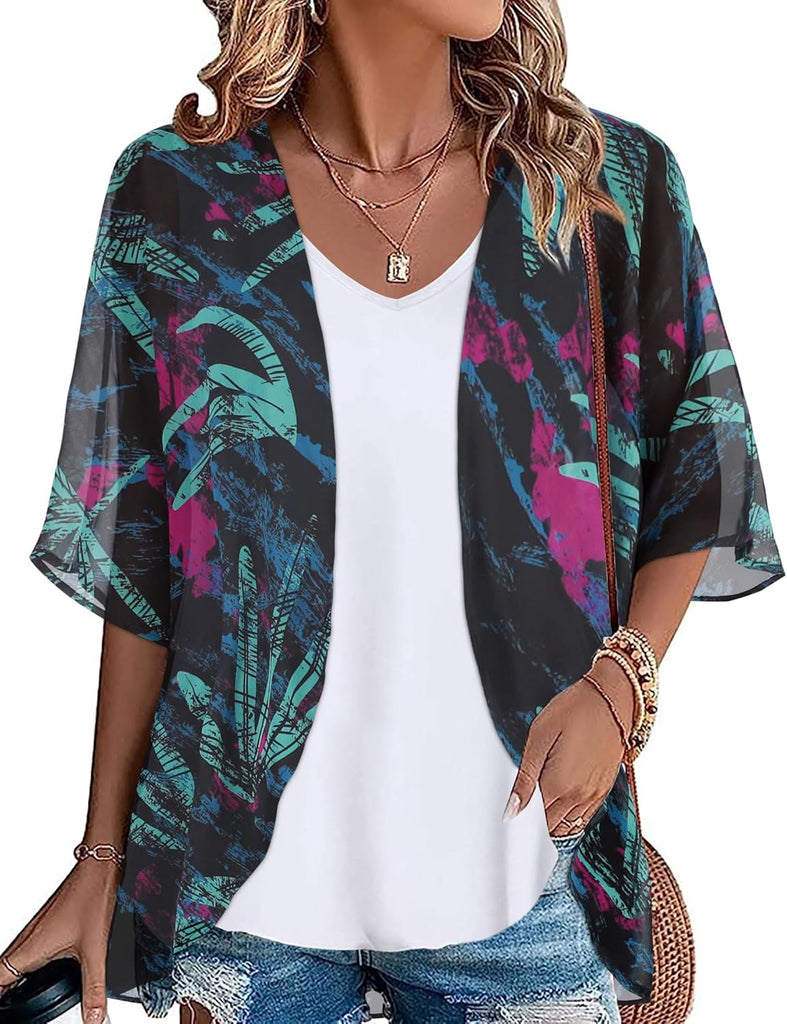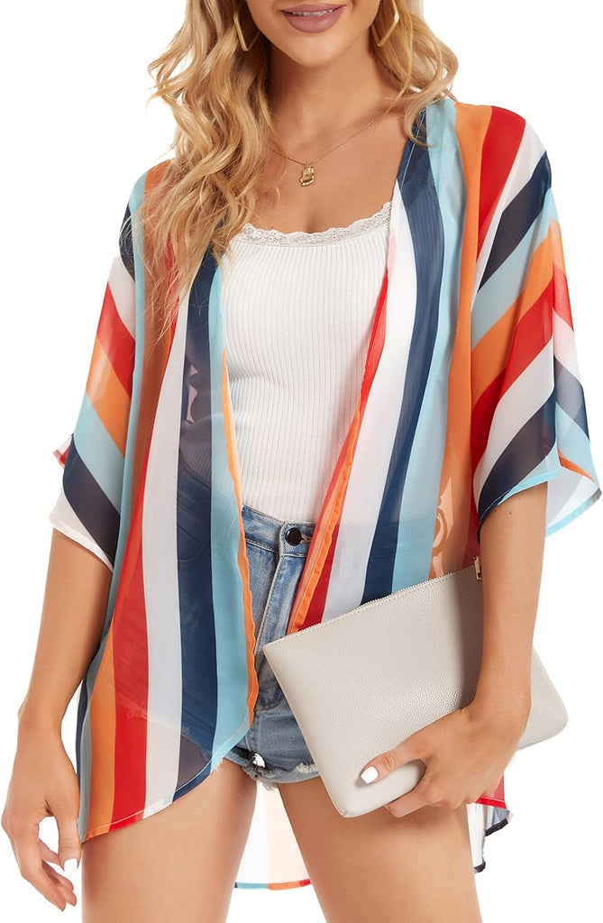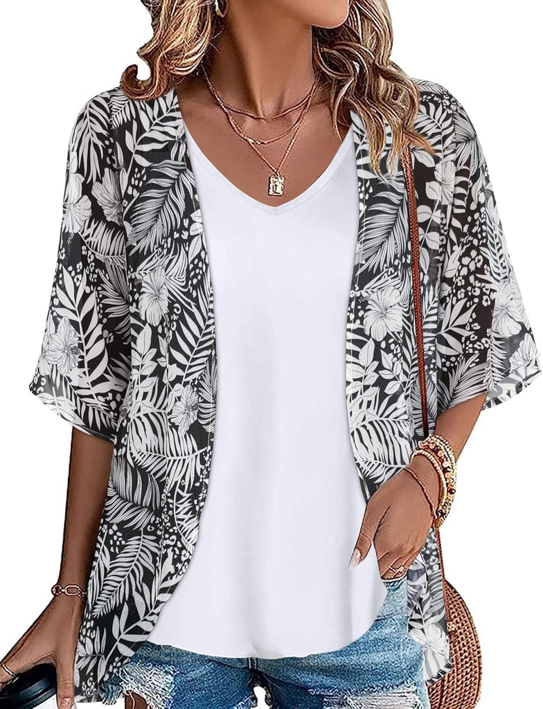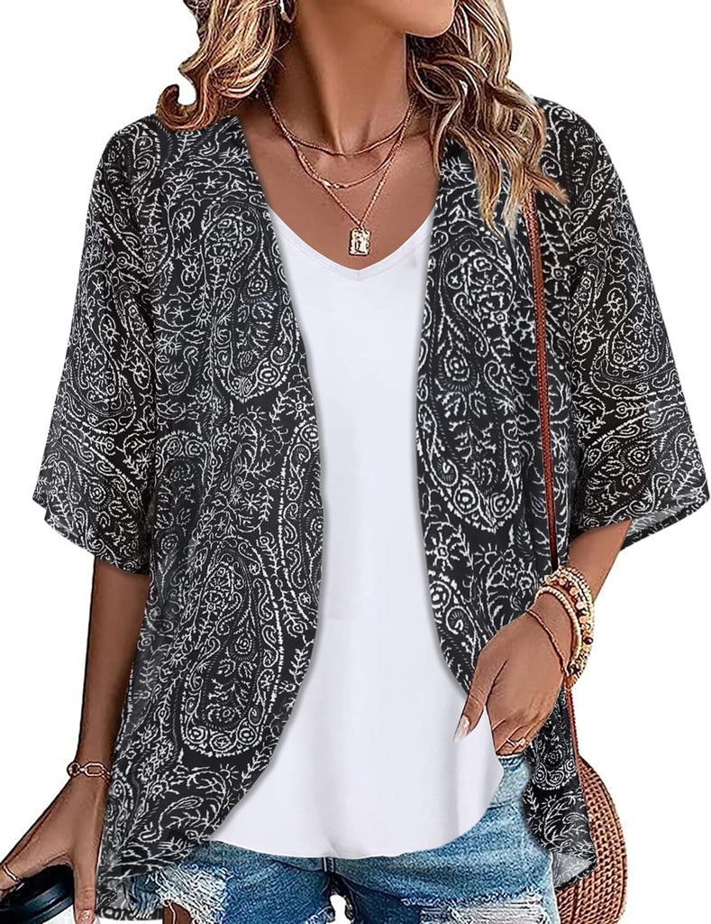 Womens Kimono Beach Cover Up Chiffon Cardigan Floral Tops Loose Capes
