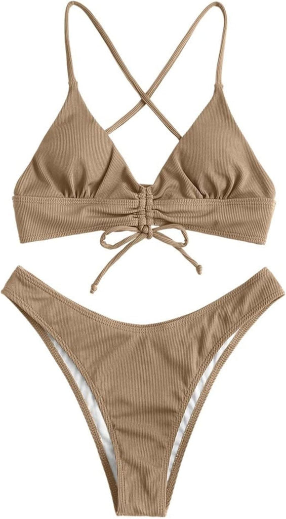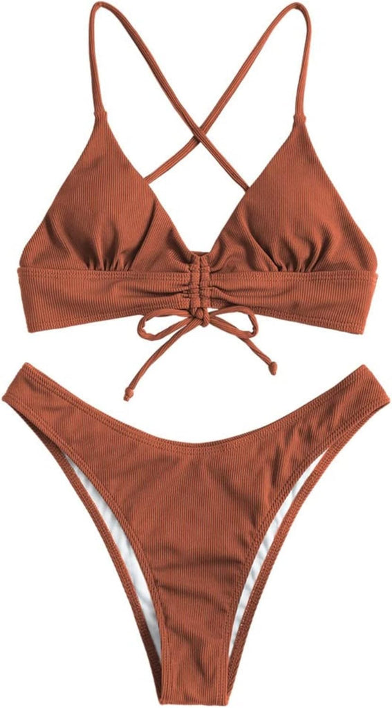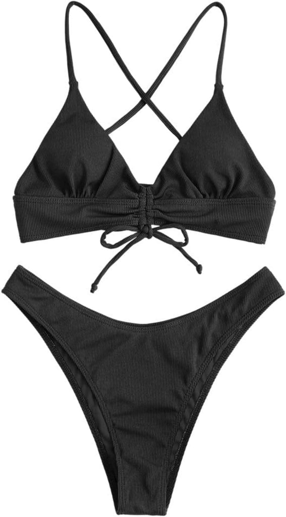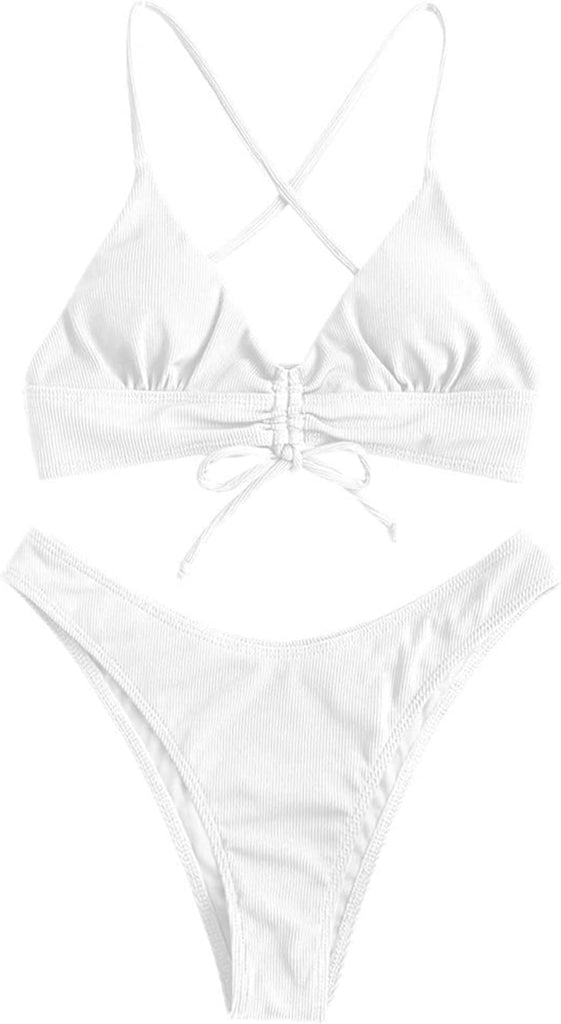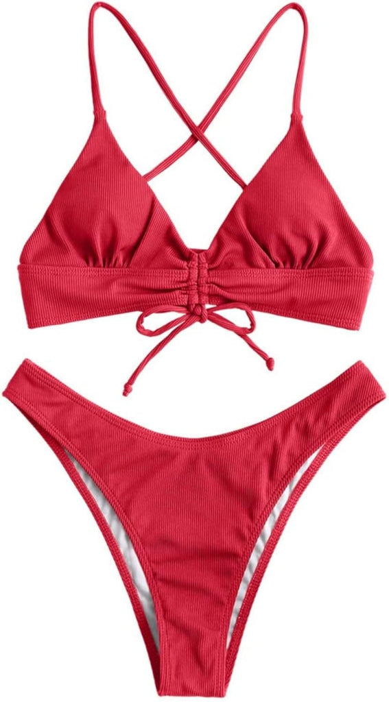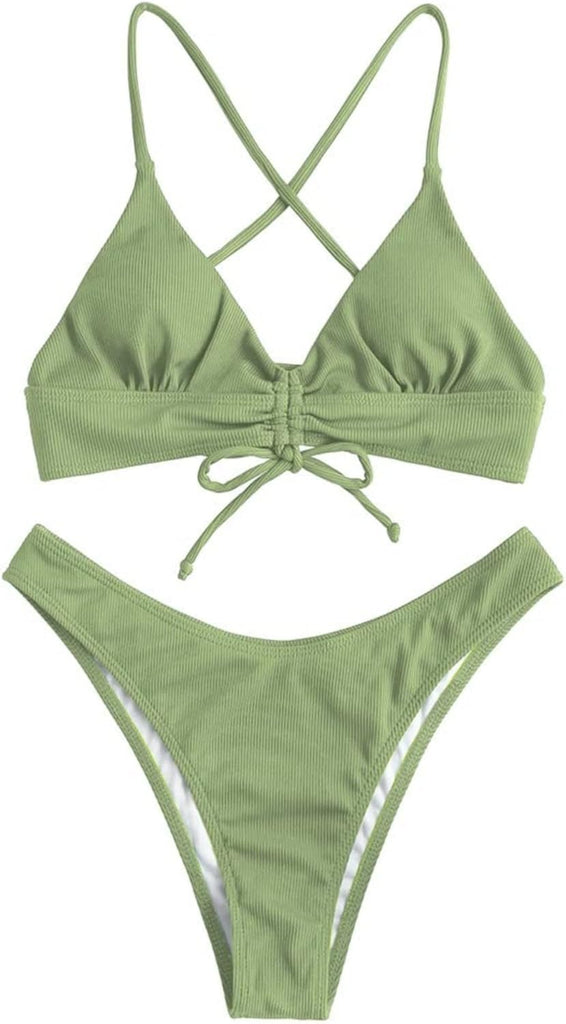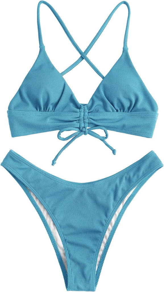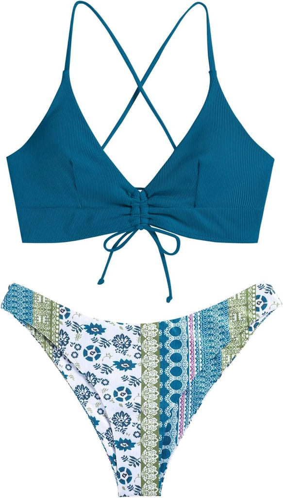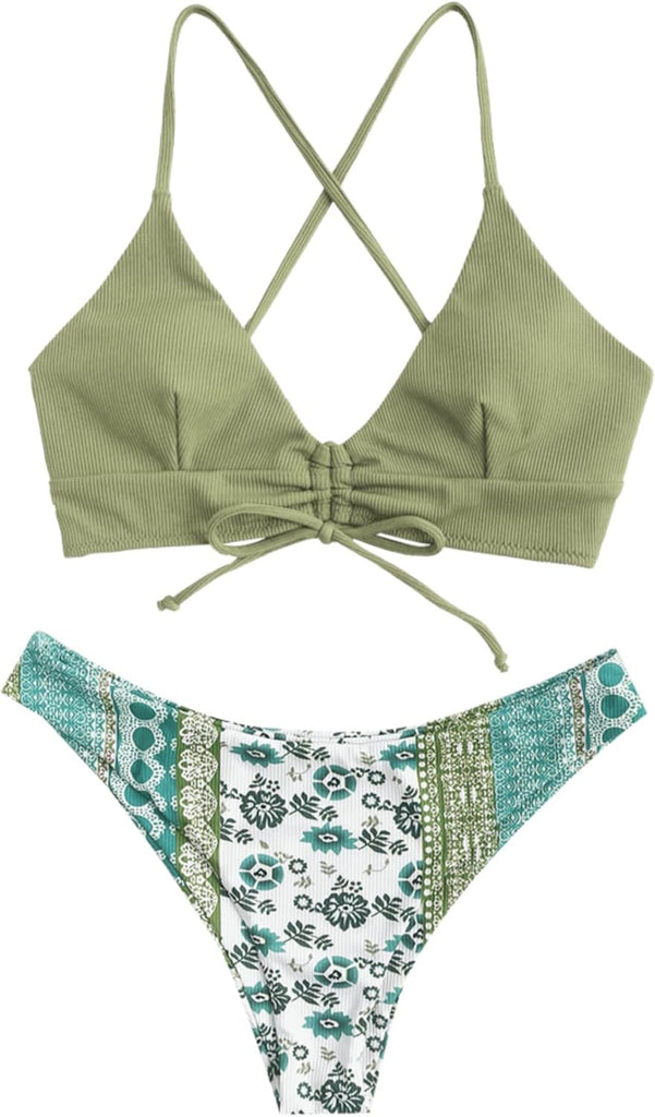 Women's Sexy Triangle Bikini Set Floral Print Spaghetti Strap 2 Piece Swimsuit Crisscross High Cut Bathing Suit