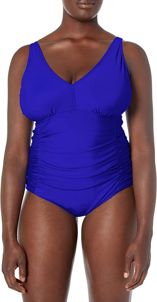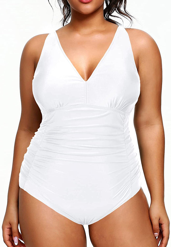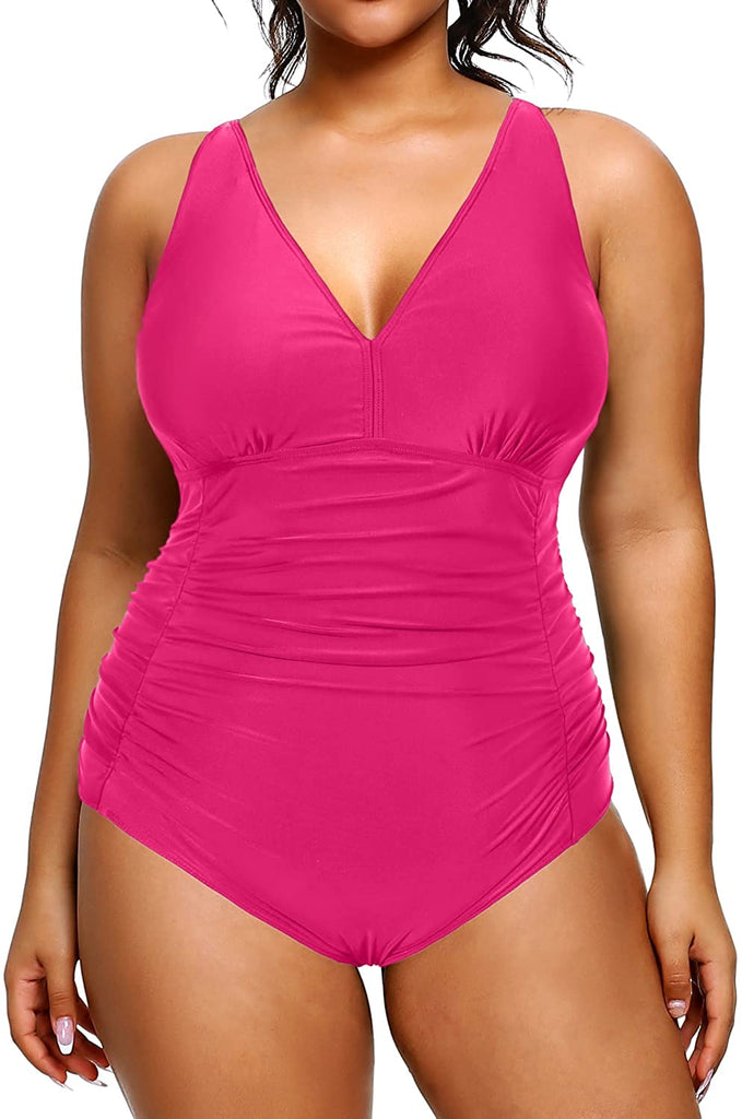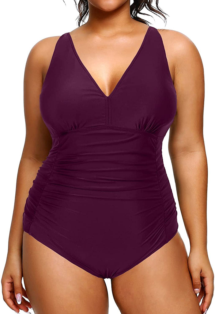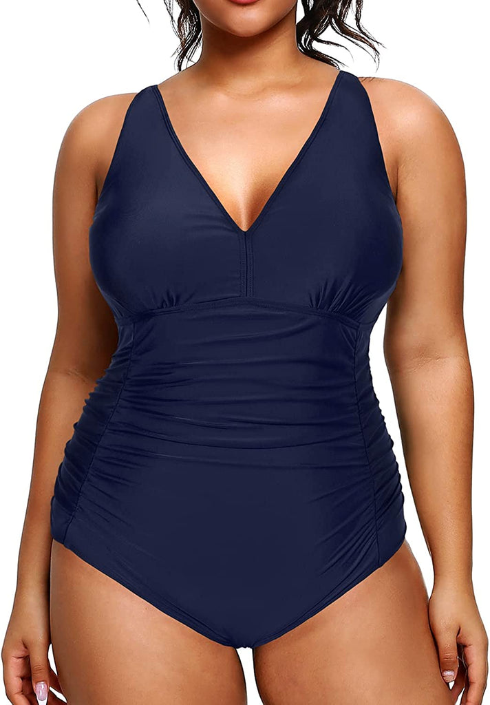 Aqua Eve Women Plus Size One Piece Swimsuits V Neck Tummy Control