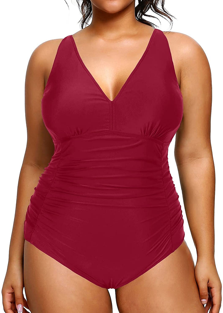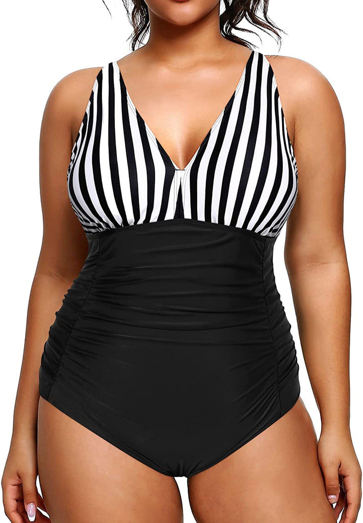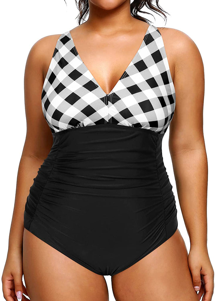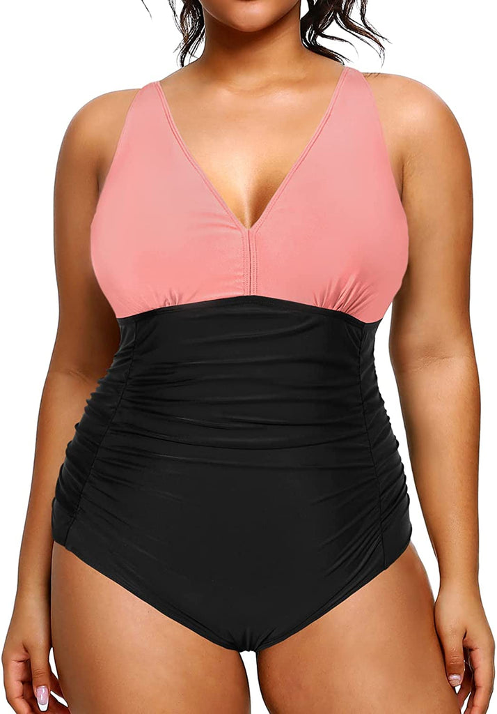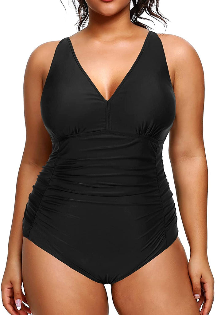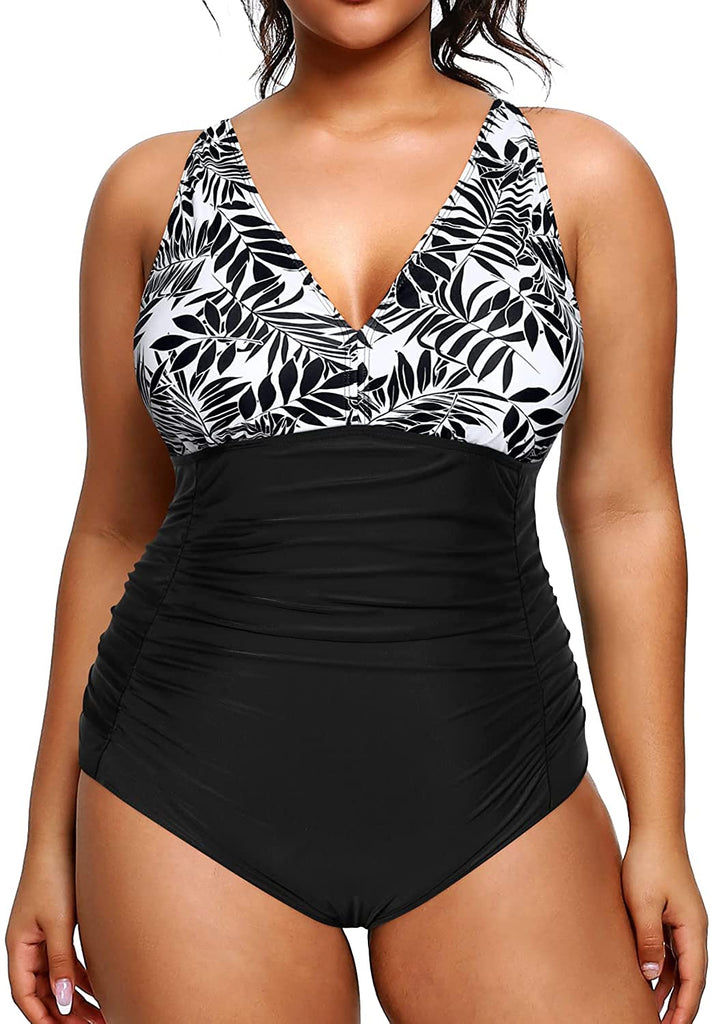 • Plus Size One Piece Swimsuits: The v neck one piece swimsuit can show your neck curve perfectly, the v neck design makes you look like more fashionable and flattering.