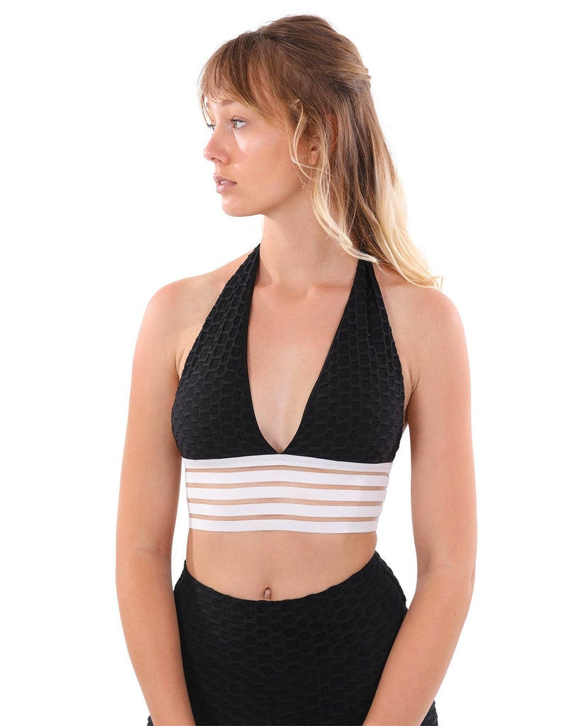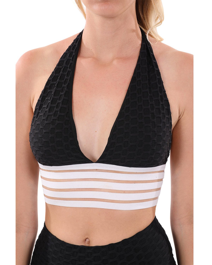 Bentley Halter-Neck Sports Bra - Black & White