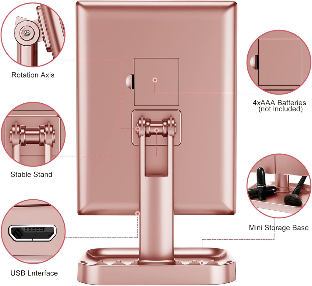 Adjustable degree rotation & touch control; adjust the mirror as per the suitable viewing angle you wish, easy and convenient touch switch, easily control the LED makeup mirror when doing makeup