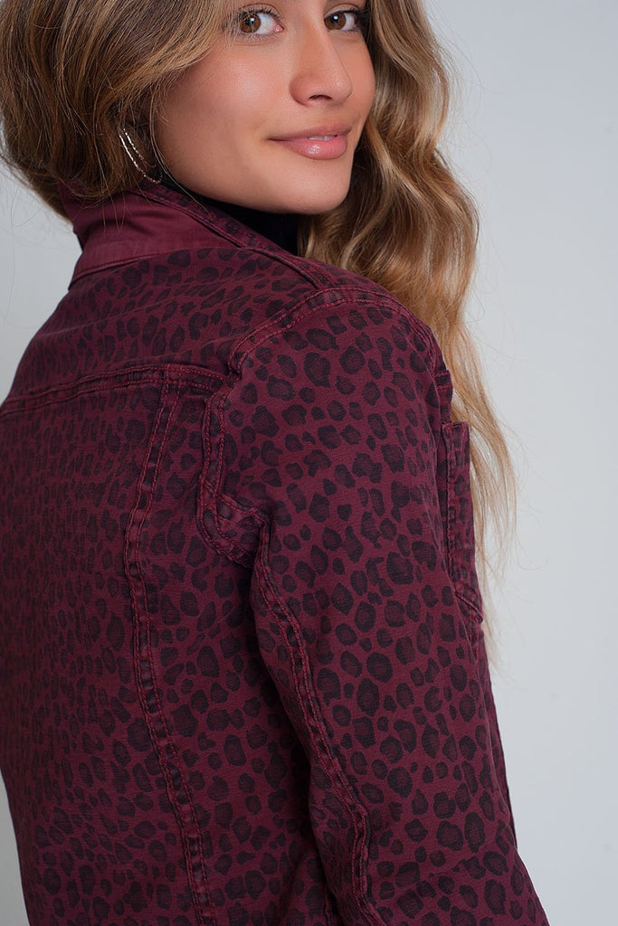 Maroon Reversible Denim Jacket With Leopard Print