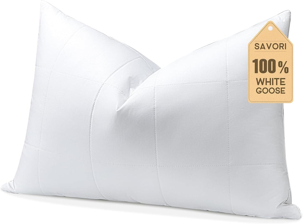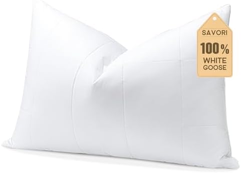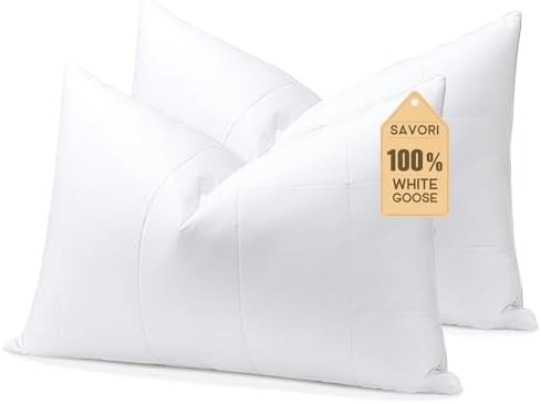 SAVORI Goose Down Feather Pillows with 100% Cotton Cover, Soft Hotel Bed Pillow for Sleeping, Cooling Pillow for Back, Stomach or Side Sleepers, King Size-White 20x36 Inch